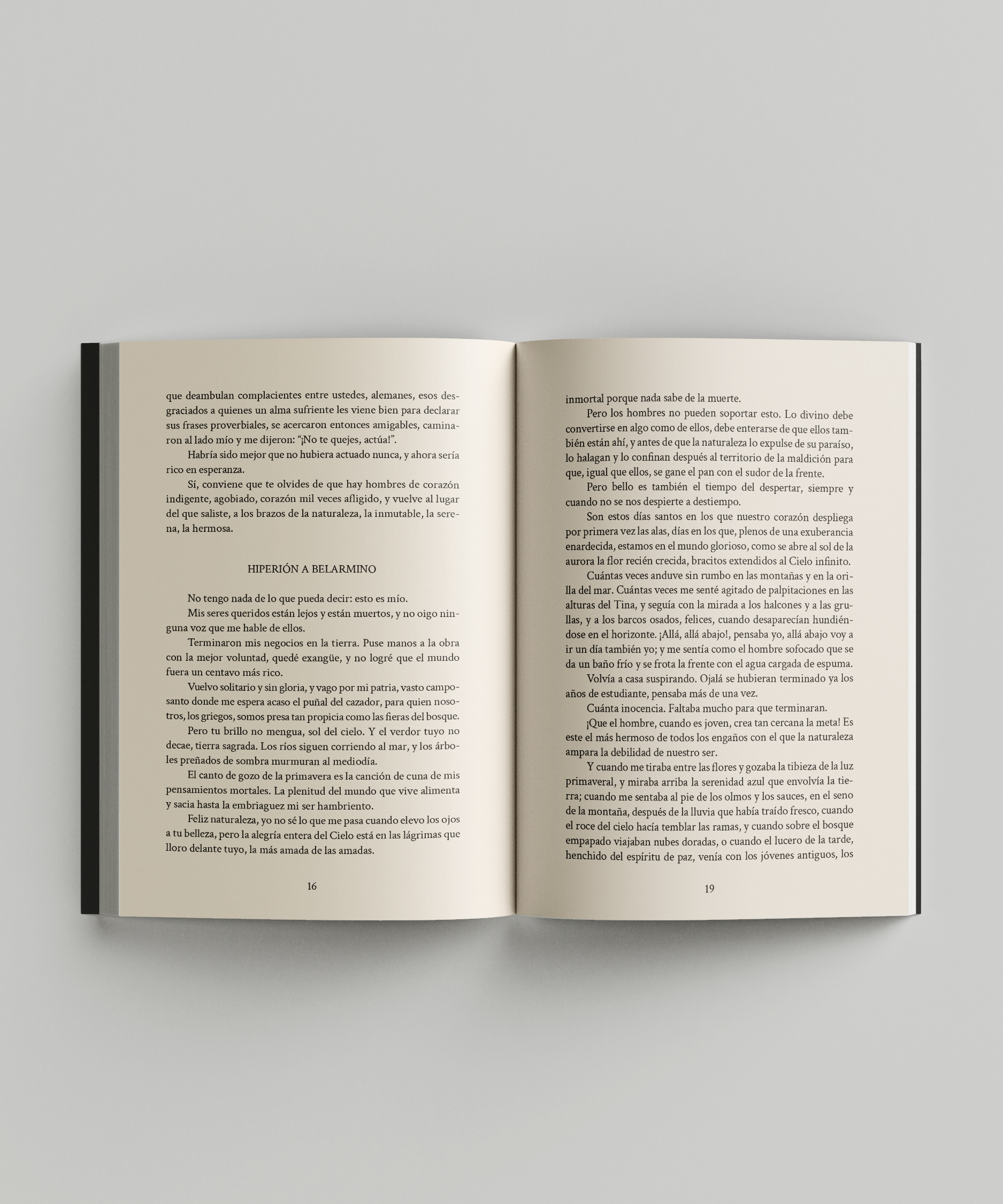 Novela epistolar, novela filosófica, novela lírica y acaso ni siquiera novela: Hiperión, cima de la literatura alemana, no admite comparación; es el libro en el que Friedrich Hörlderlin anudó todos los hilos de sus agitaciones poéticas e históricas. Tal vez por eso mismo el poeta seguía orgulloso de la obra incluso en los años de su locura, según cuenta Wilhelm Waiblinger, su visitante de esos días de luminosa oscuridad: “Con lo que puede entretenerse jornadas completas es con su Hiperión. Suele tenerlo casi siempre abierto. Cientos de veces, cuando yo iba a visitarlo, ya desde afuera lo oía declamar en voz alta, y lo hace con gran patetismo. Muchas veces me leía fragmentos. Cuando terminaba un párrafo empezaba a decir con una mímica exagerada: ‘¡Qué hermoso, qué hermoso…!’”.