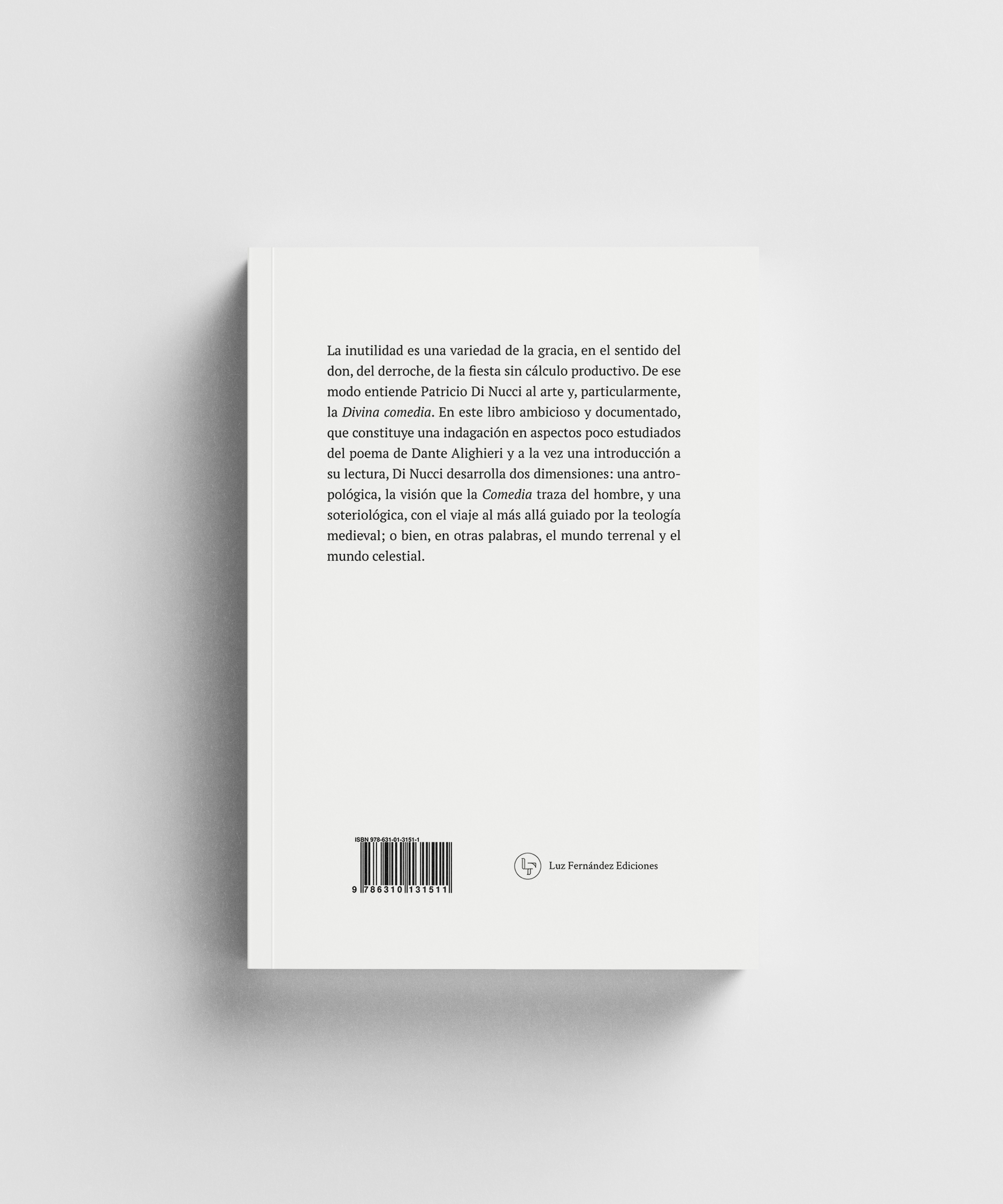 La inutilidad es una variedad de la gracia, en el sentido del don, del derroche, de la fiesta sin cálculo productivo. De ese modo entiende Patricio Di Nucci al arte y, particularmente, la Divina comedia. En este libro ambicioso y documentado, que constituye una indagación en aspectos poco estudiados del poema de Dante Alighieri y a la vez una introducción a su lectura, Di Nucci desarrolla dos dimensiones: una antropológica, la visión que la Comedia traza del hombre, y una soteriológica, con el viaje al más allá guiado por la teología medieval; o bien, en otras palabras, el mundo terrenal y el mundo celestial.